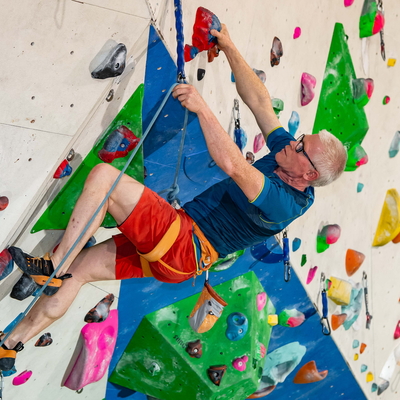 Jeden Montag "Hallenklettern 60+". Feiertage ausgenommen wie Ostermontag und Pfingstmontag.
