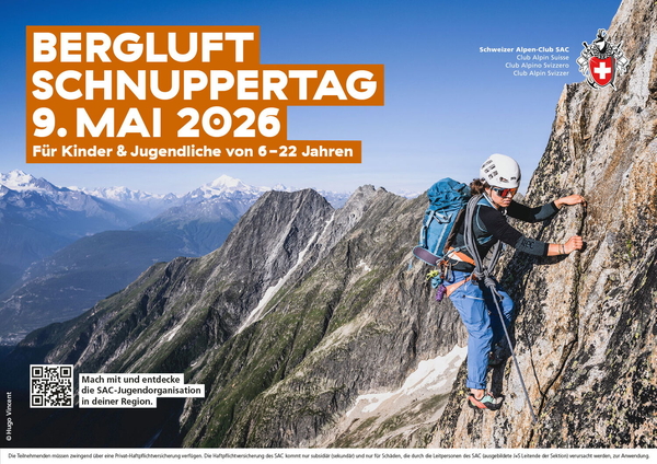 Am 9. Mai 2026 laden die Sektionen des Schweizer Alpen-Club SAC zum zweiten Mal zum nationalen «Bergluft-Schnuppertag» ein. Während eines Tages können Kinder und Jugendliche im Alter von 6 bis 22 Jahren Bergluft schnuppern und die SAC-Jugendorganisation in ihrer Region kennenlernen. Der Bergluft-Schnuppertag bietet den idealen Einstieg in den Bergsport: Unter fachkundiger Begleitung können junge Menschen ihre ersten Kletterbewegungen am Felsen wagen und mit Gleichgesinnten einen Tag draussen verbringen. Mit dabei ist auch die Sektion Pilatus – darüber freuen wir uns sehr!