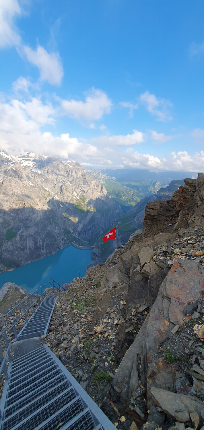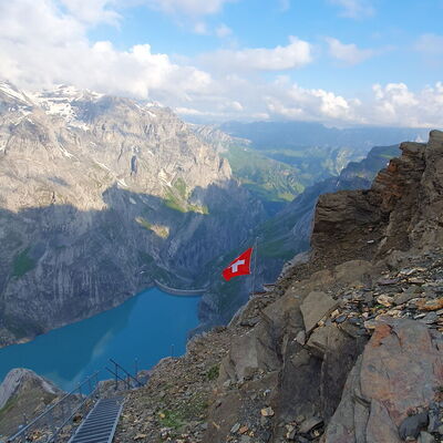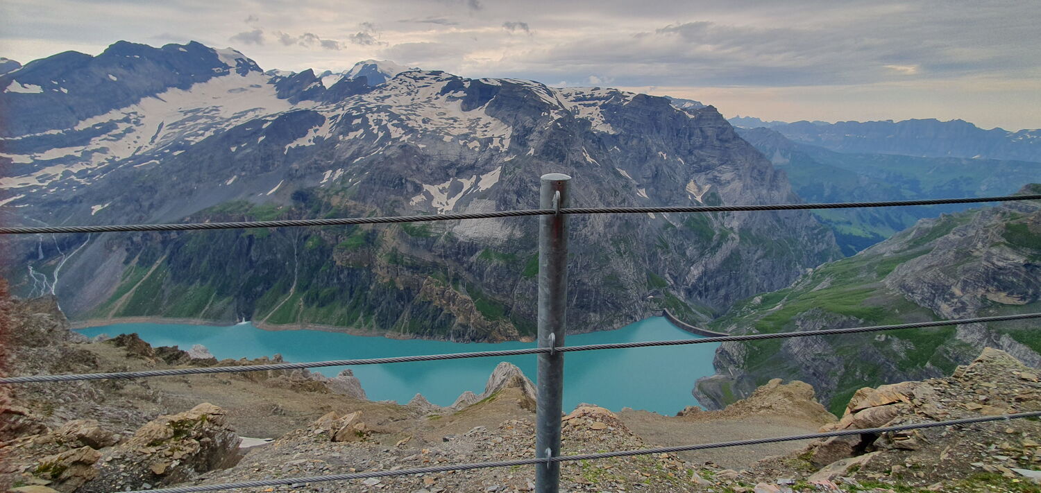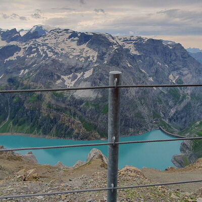 Mit ÖV reisen wir nach Linthal und mit dem Alpentaxi weiter zum Tierfed. Mit der Bahn geht’s zum Chalchtrittli auf (1860m) wo die Tour startet. Der erste Abschnitt erfordert Schwindelfreiheit und Trittsicherheit. Über Nüschengg und Muttenwändli erreichen wir nach ca. 3 Stunden die Muttseehütte (2500m) Weiter entlang dem Muttsee oder der Muttenalp und unterhalb den Muttenbergen folgt der Weg weiter Richtung Kistenpasshütte, welche man nach weiteren 1 ½ bis 2 Stunden erreicht. Die letzten 600 Schritte vor der Hütte erfordern nochmals Trittsicherheit, um die mit Ketten gesicherten Stellen zu meistern. In dieser kleinen, sehr einfachen aber gemütlichen SAC-Hütte verbringen wir die Nacht. Der Blick von hier auf den Limmernstausee und die Glarner Alpen ist beeindruckend.